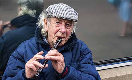 Atherton man plays the pipes of pizza.